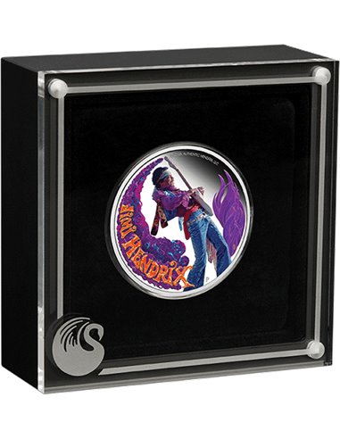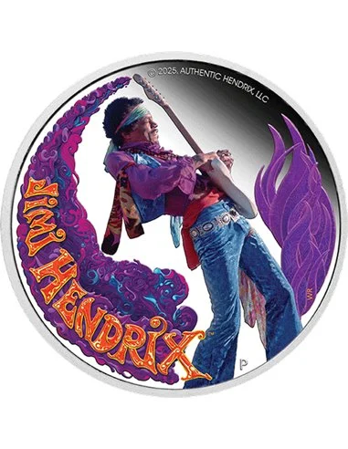 Jimi Hendrix es ampliamente considerado como el guitarrista eléctrico más grande e influyente de todos los tiempos. En 1966, a los 24 años, Jimi se mudó de su Seattle natal a Londres, iniciando así su meteórico ascenso. Conquistando Gran Bretaña con la banda The Jimi Hendrix Experience, comenzó una intensa etapa de asombrosa creatividad con Purple Haze, Little Wing, Spanish Castle Magic y Voodoo Child (Slight Return), por nombrar solo algunas de sus legendarias grabaciones. Estados Unidos se enamoró de Jimi Hendrix en Monterey en 1967. Como señal de que seguirían más actuaciones icónicas, prendió fuego a su guitarra durante Wild Thing y cambió la música popular para siempre. A los 27 años, el extraordinario cantante, compositor y guitarrista Jimi Hendrix falleció en 1970. Un pionero, un genio, un grande de todos los tiempos; su nombre está grabado a fuego en los anales de la historia de la música. Esta moneda, acuñada por The Perth Mint, muestra una fotografía a color de Jimi Hendrix tocando su famosa guitarra eléctrica en el Northern California Folk-Rock Festival en San José, California, en mayo de 1969. Acuñada a partir de 1 oz de plata pura al 99,99 %, no se emitirán más de 5000 de la moneda de plata a color Jimi Hendrix 2025 de 1 oz.