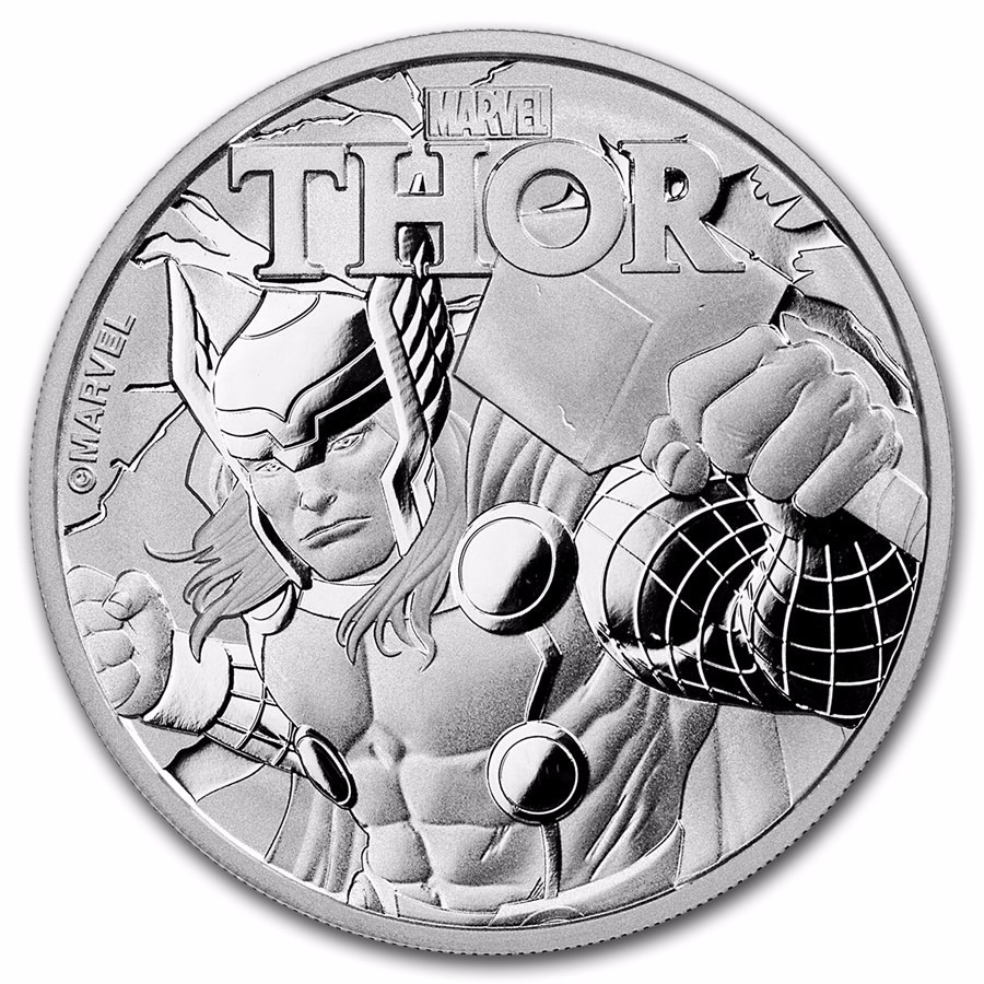 Esta moneda presenta un diseño sumamente detallado del popular superhéroe de Marvel, Thor, y es la segunda de esta serie, tras Spiderman. Acuñada por la mundialmente famosa Casa de la Moneda de Perth (Australia), está hecha de 1 onza de plata fina y se entrega en su cápsula original. ¡La acuñación de esta onza de plata está limitada a solo 50,000 piezas en todo el mundo!