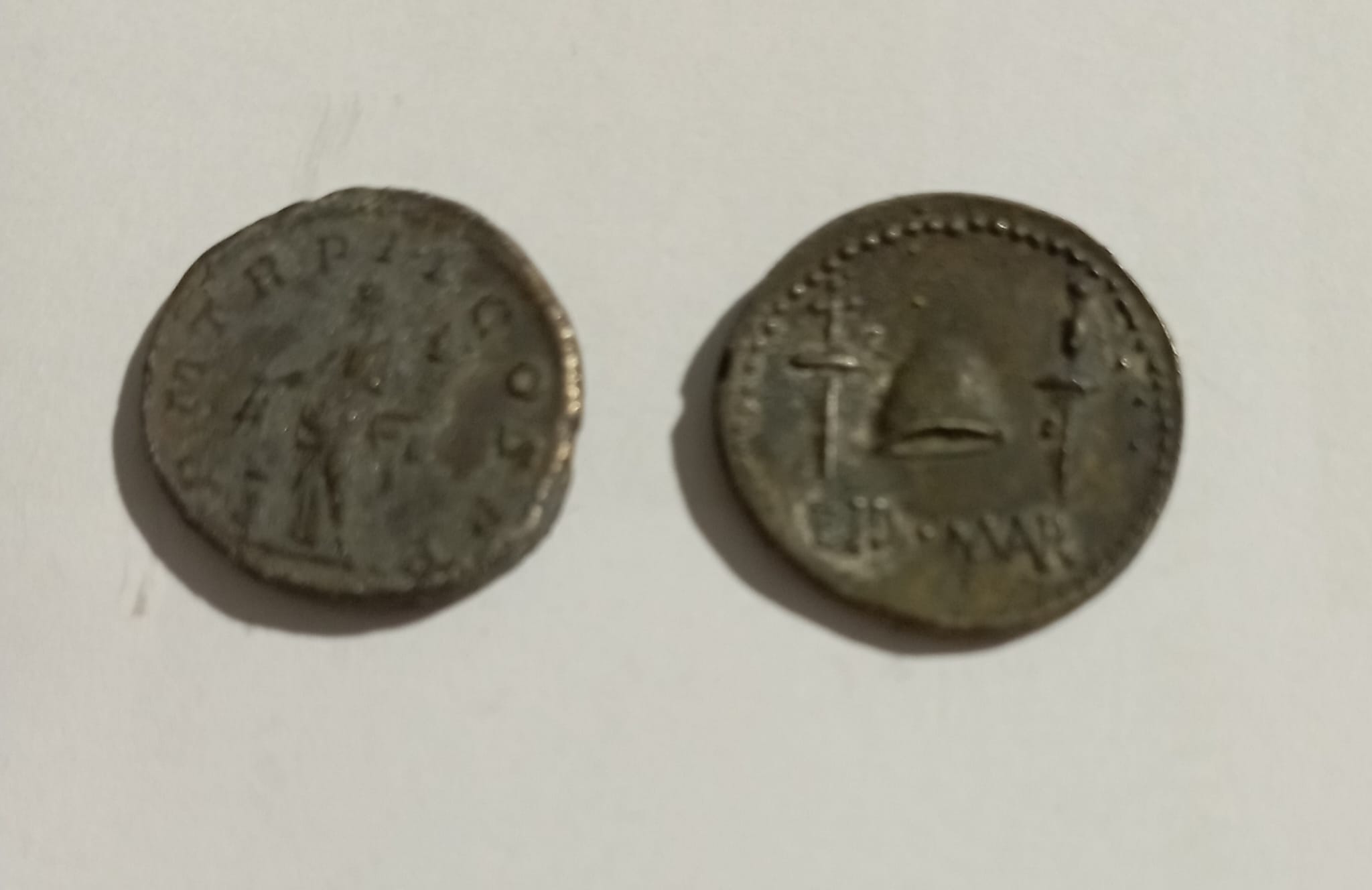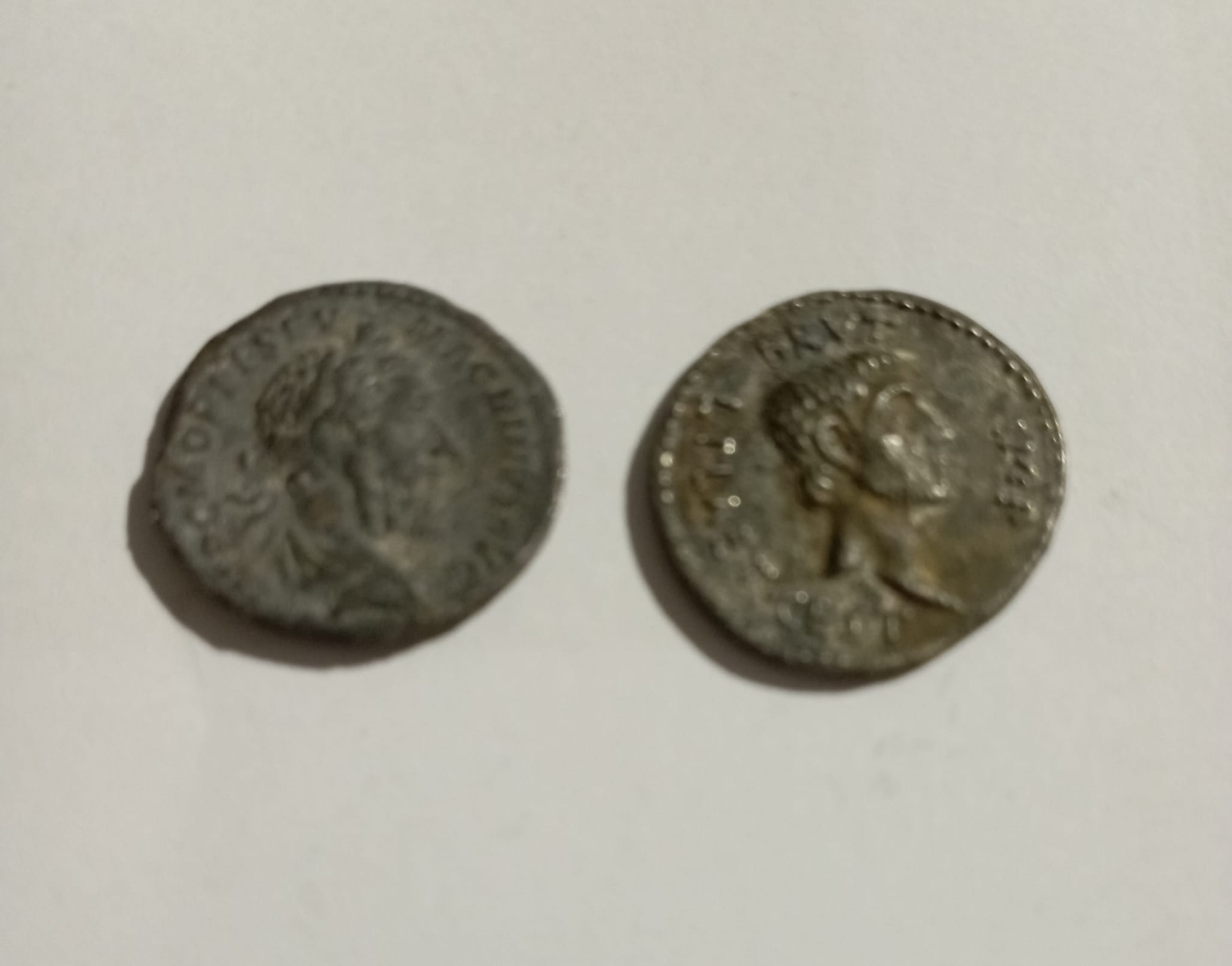 Reproducción de 2 Denarios Romanos hechos en plata y patinados con las mejores técnicas actuales.
